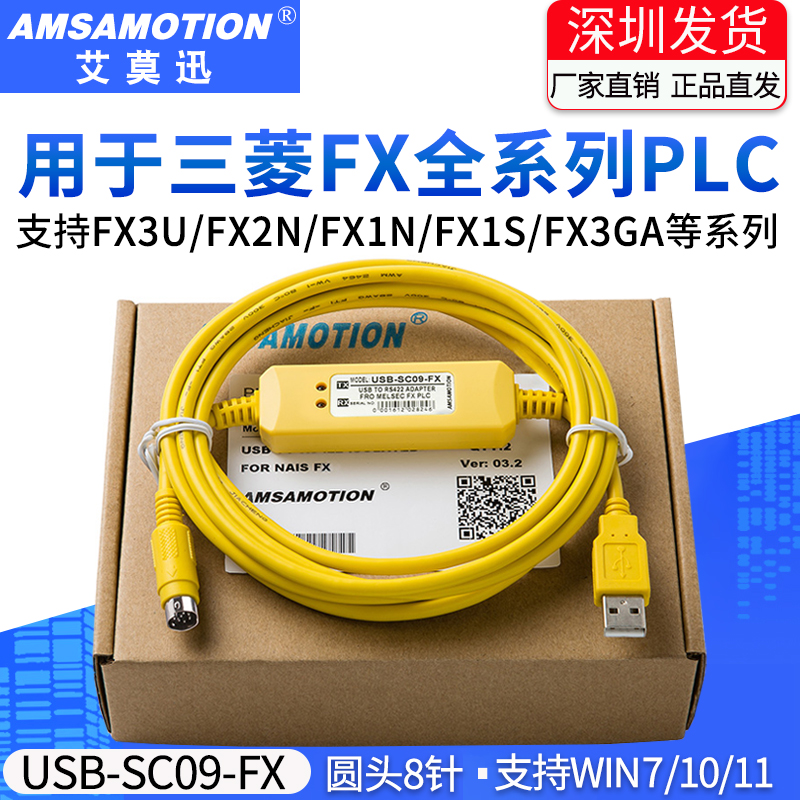 艾莫迅适用三菱plc数据下载线 USB-SC09-FX通讯线 FX系列编程电缆