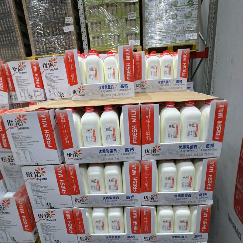 山姆代购 优诺鲜牛乳1.892L/瓶巴氏杀菌乳全脂纯牛奶3.8g蛋白质