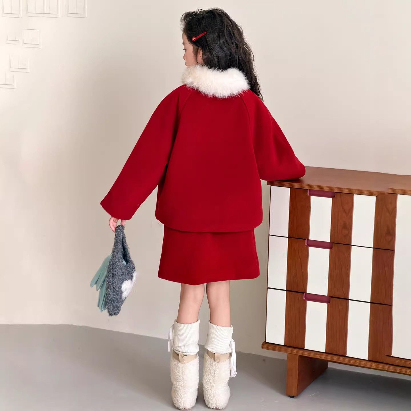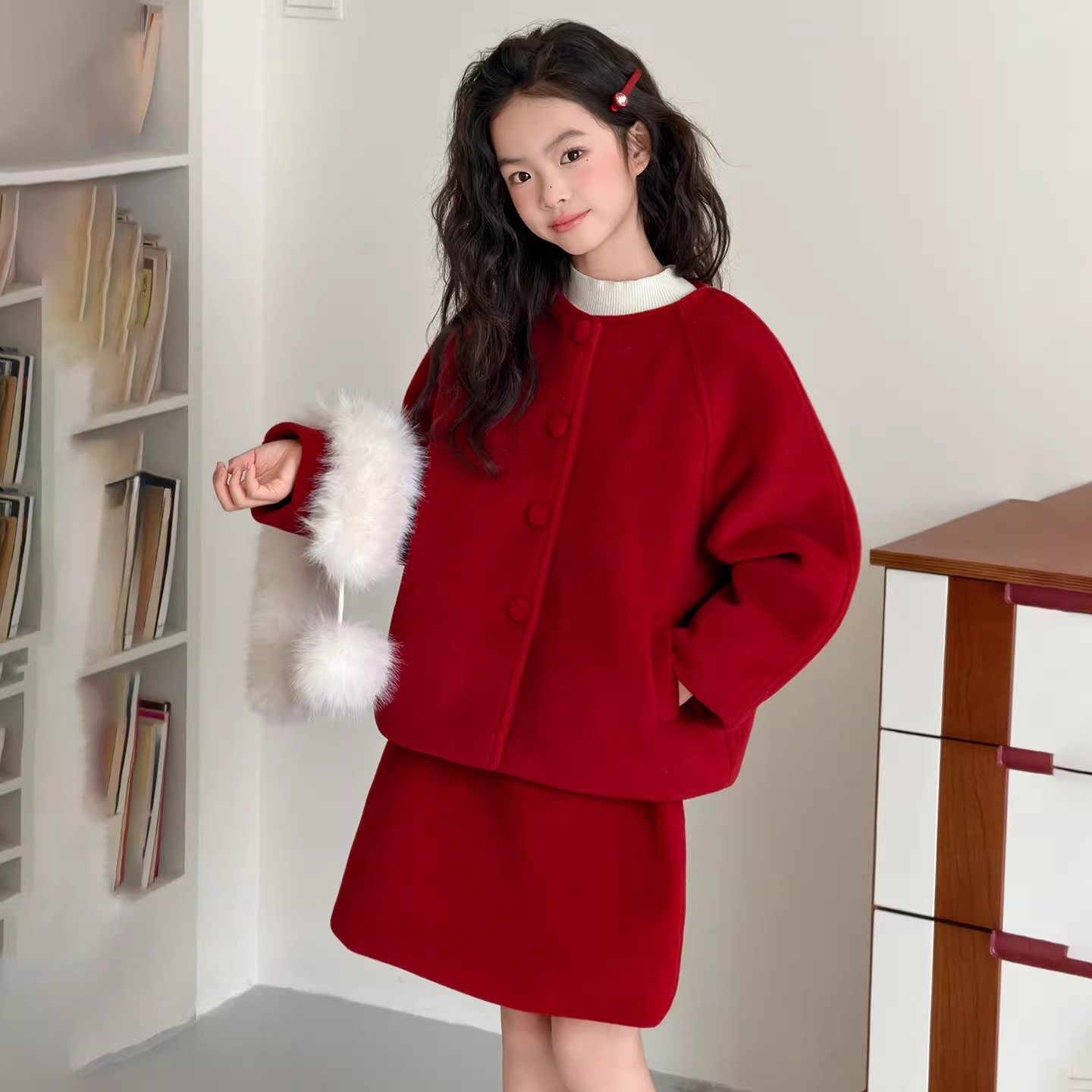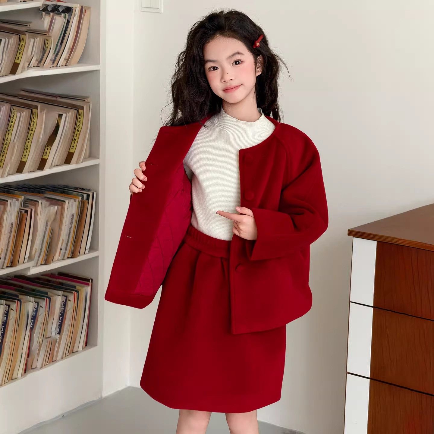 2026新款女童【本命年小香风拜年服】冬加厚外套裙子春节红色套装