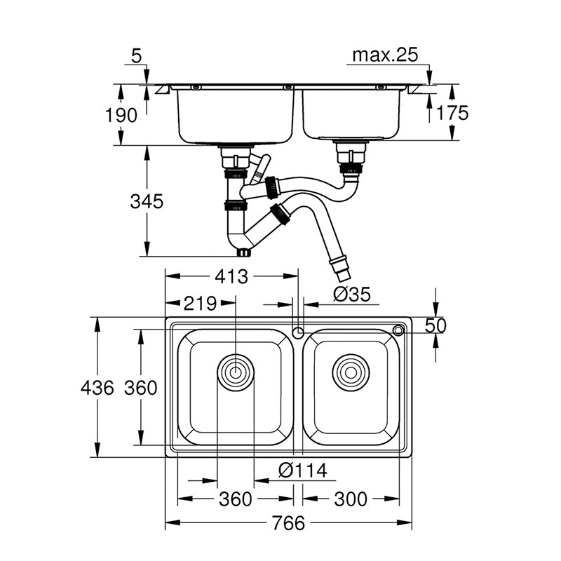 德国高仪GROHE 31917SD0 家用304不锈钢水槽K500洗菜盆手工双槽