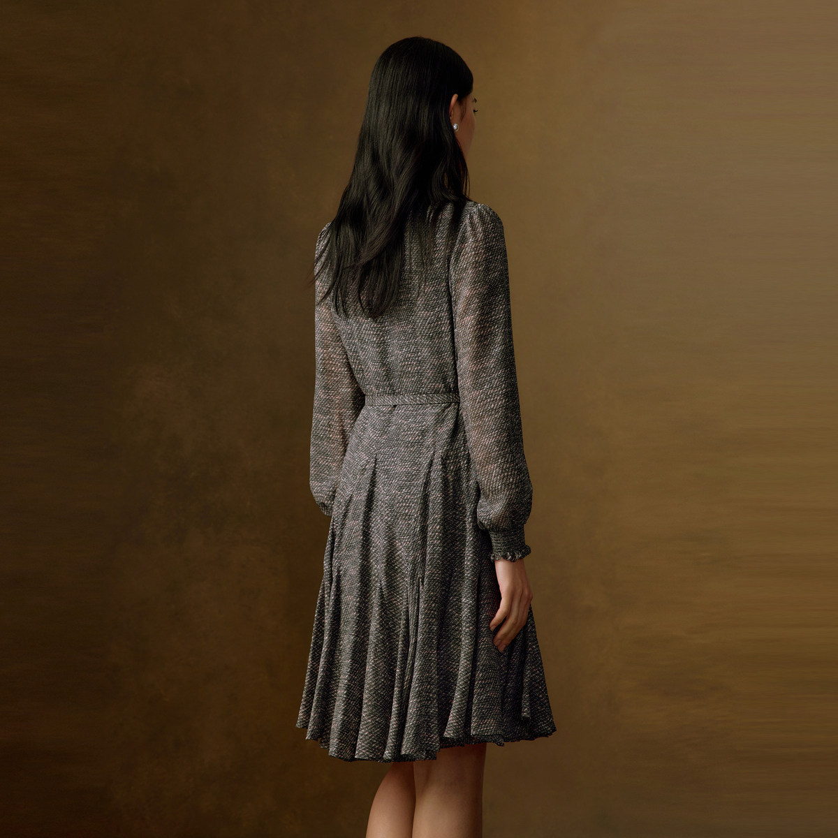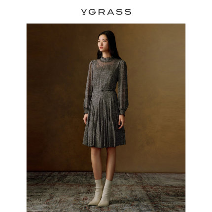 VGRASS真丝乔其桑蚕丝刺绣连衣裙