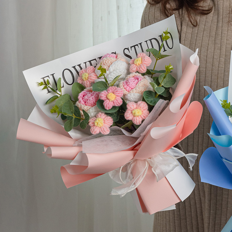 520礼物送女友玫瑰针织花束毛线手工编织情人节表白毕业季永生花