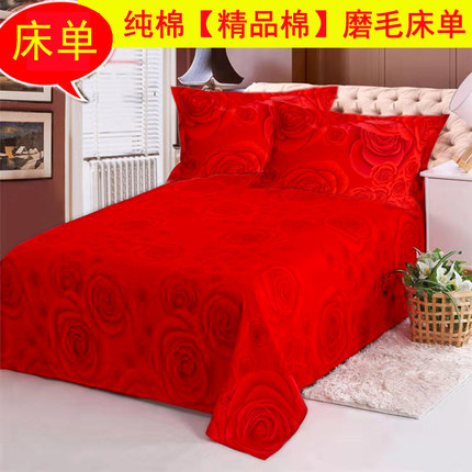 纯棉床单件磨毛大红喜事全棉布料被单1.8单双人2米加大结婚庆炕单