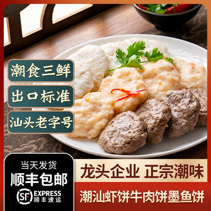 潮庭潮汕三鲜潮汕手打墨鱼饼虾饼牛肉饼早餐儿童半成品虾排鲜虾饼