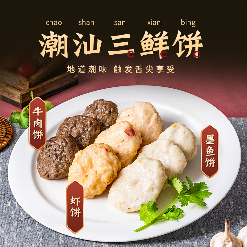 潮庭潮汕三鲜饼墨鱼饼虾饼牛肉饼