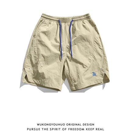 日系潮牌抽绳刺绣速干短裤男夏季纯色宽松沙滩裤运动休闲五分裤男