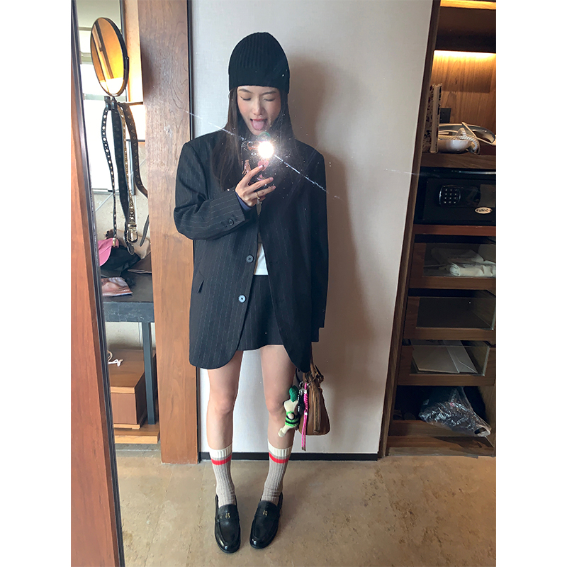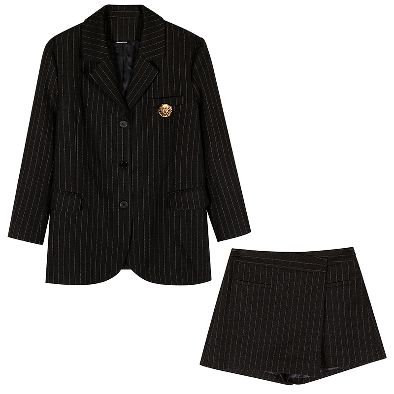 落落狷介 一整套入秋穿搭条纹两件套2025秋季西装套装女西服+裙裤
