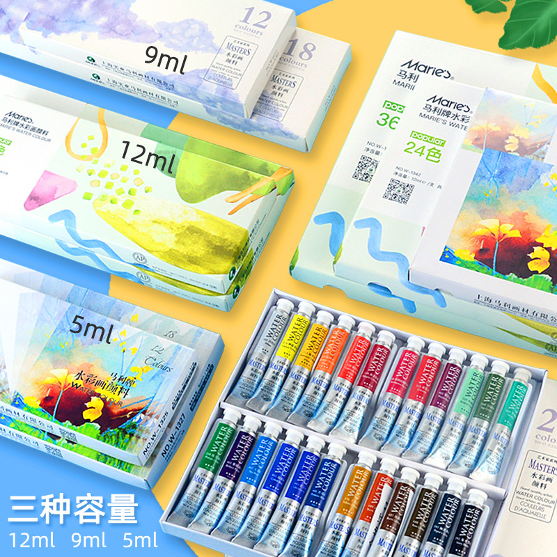 马利管状水彩颜料套装美术专用18色24色36色马力牌玛丽工具画全套