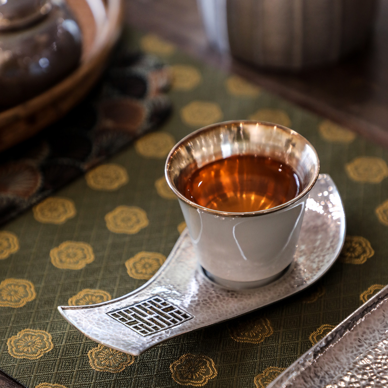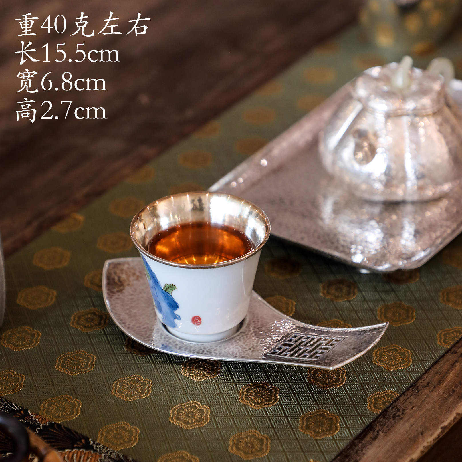 纯银时代纯手工杯托足银锤纹镂空