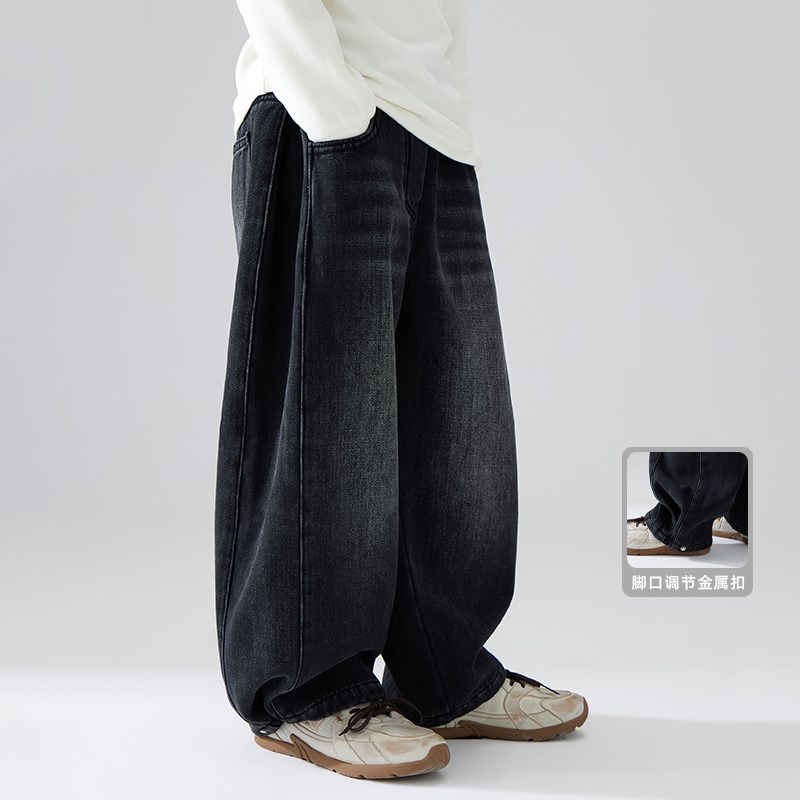 儿童冬季加绒牛仔裤女童男童裤子一体绒加厚保暖直筒裤休闲裤宽松