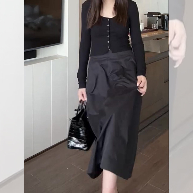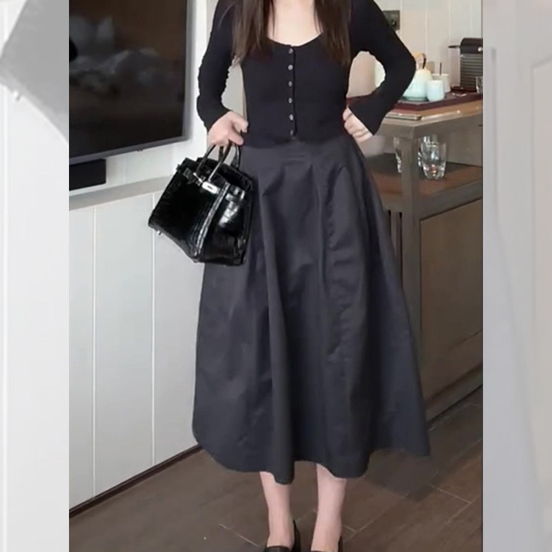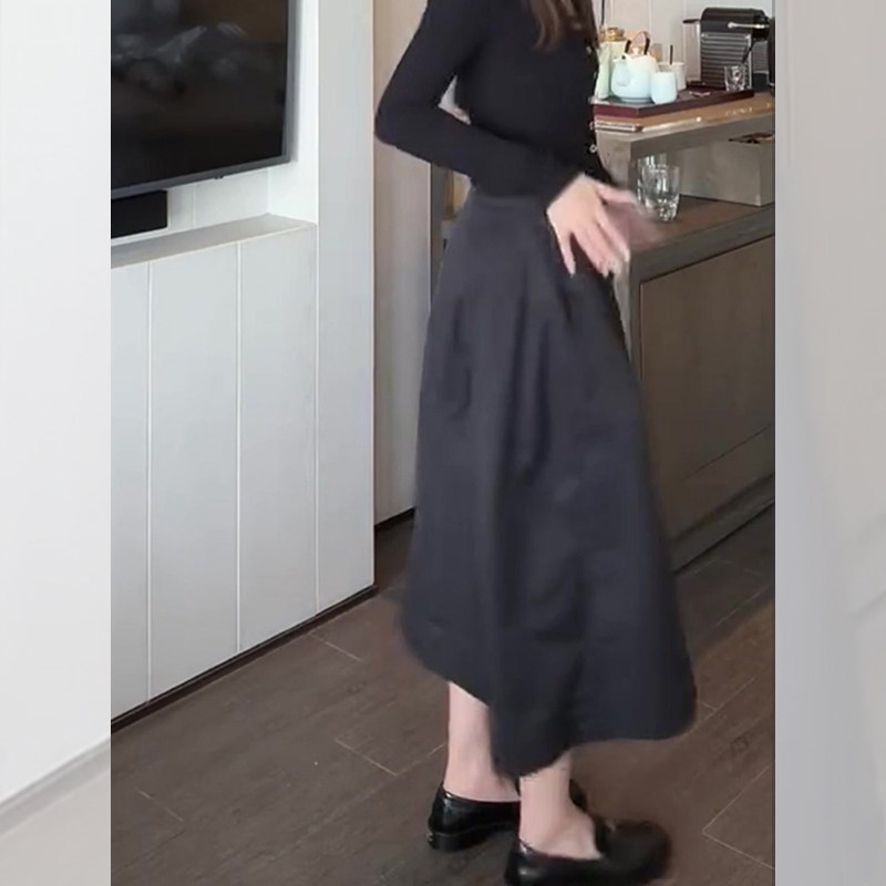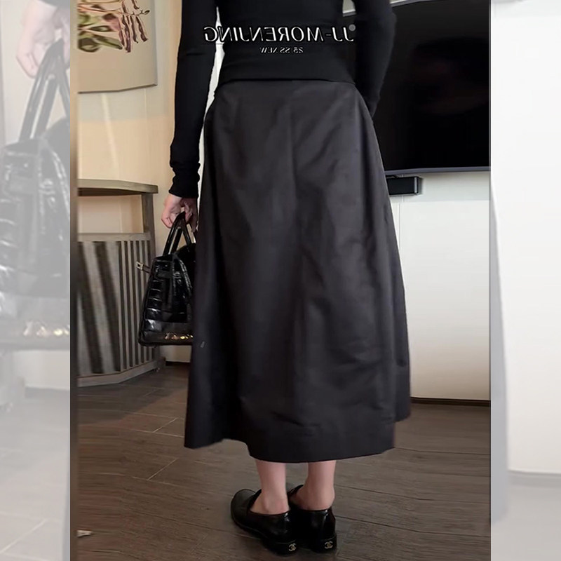 极简风黑色花苞裙女秋季新款遮肉显瘦通勤气质休闲百搭减龄半身裙