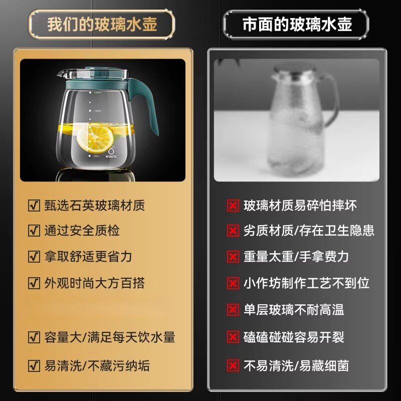 加深加大玻璃冷水壶家用大凉水壶大容量冰箱冰水壶冷泡茶杯