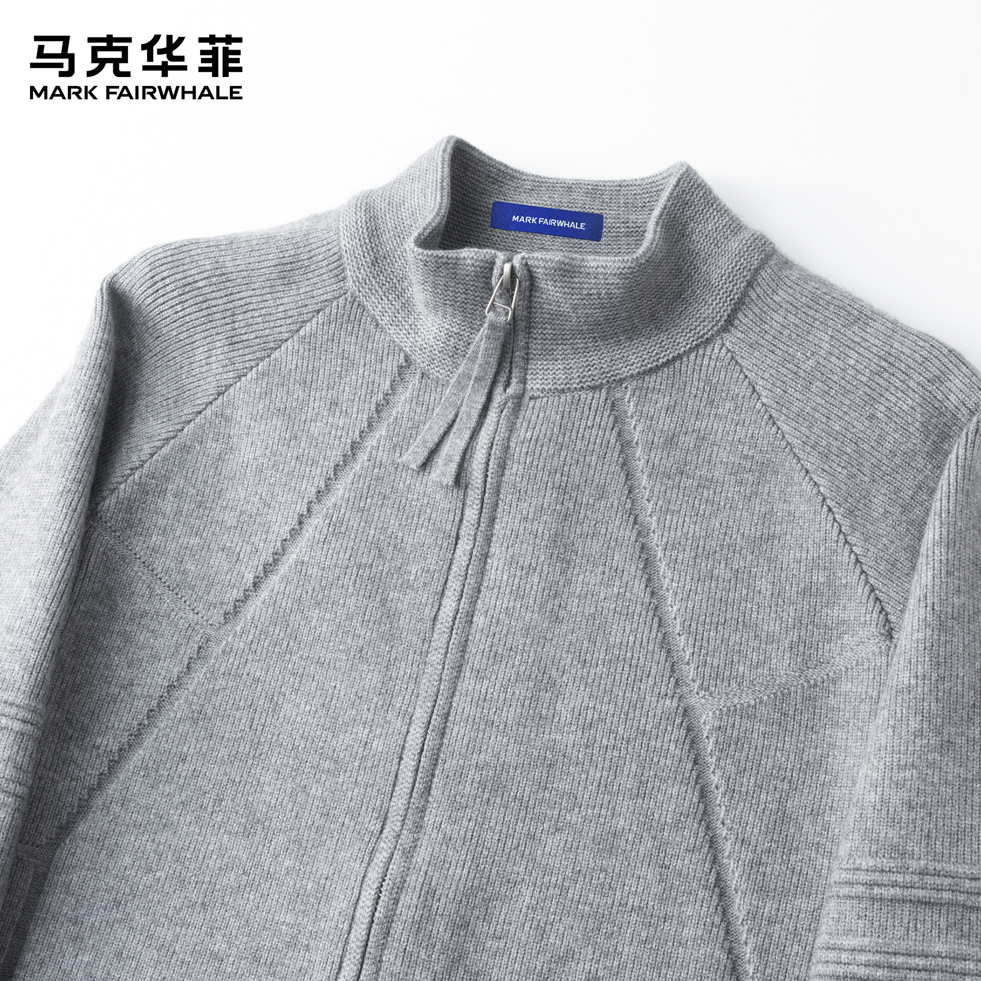 马克华菲针织开衫男春季新款潮牌美式半高领拉链重磅宽松毛衣外套