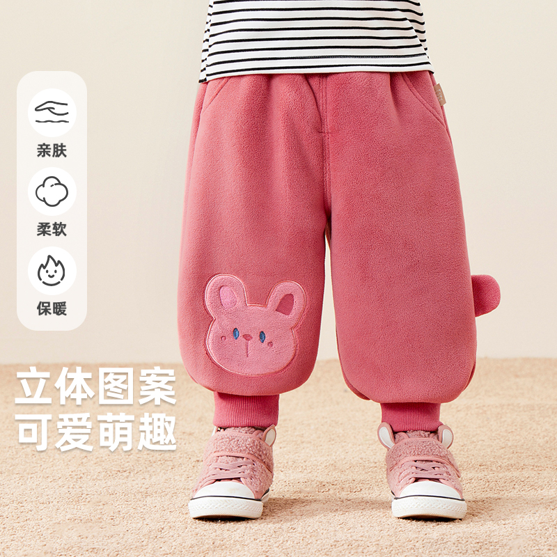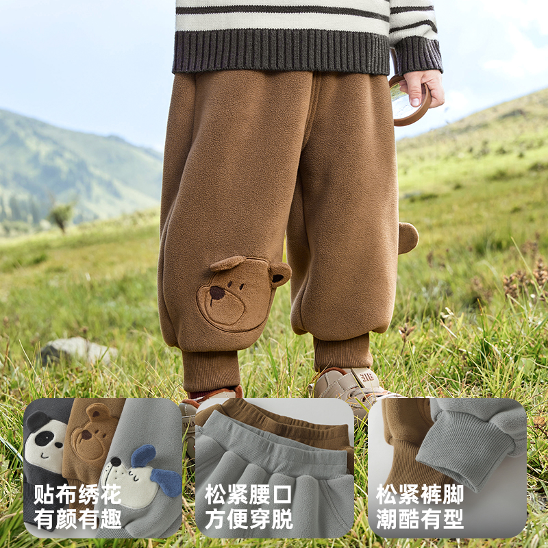 咔咔熊猫男童裤子秋冬童装加绒婴儿冬装奥粒绒儿童婴童运动长裤