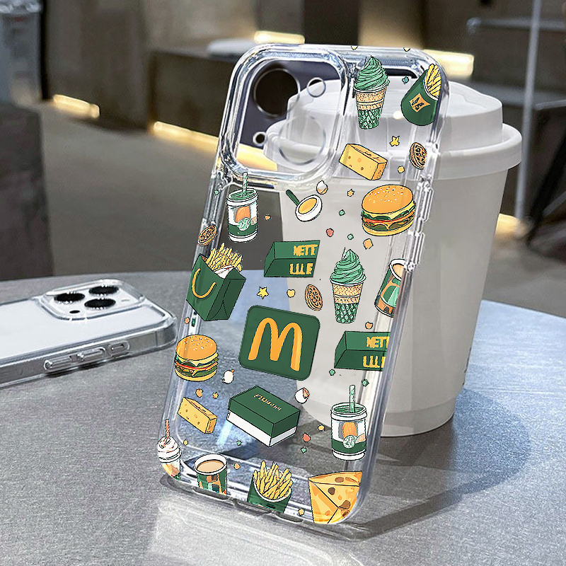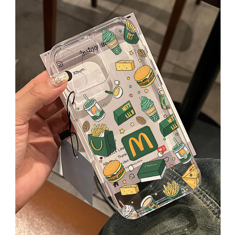 绿色汉堡适用苹果16promax手机壳iphone15新款mate60透明14红米note13防摔k70小米华为pura70软壳vivoppo荣耀