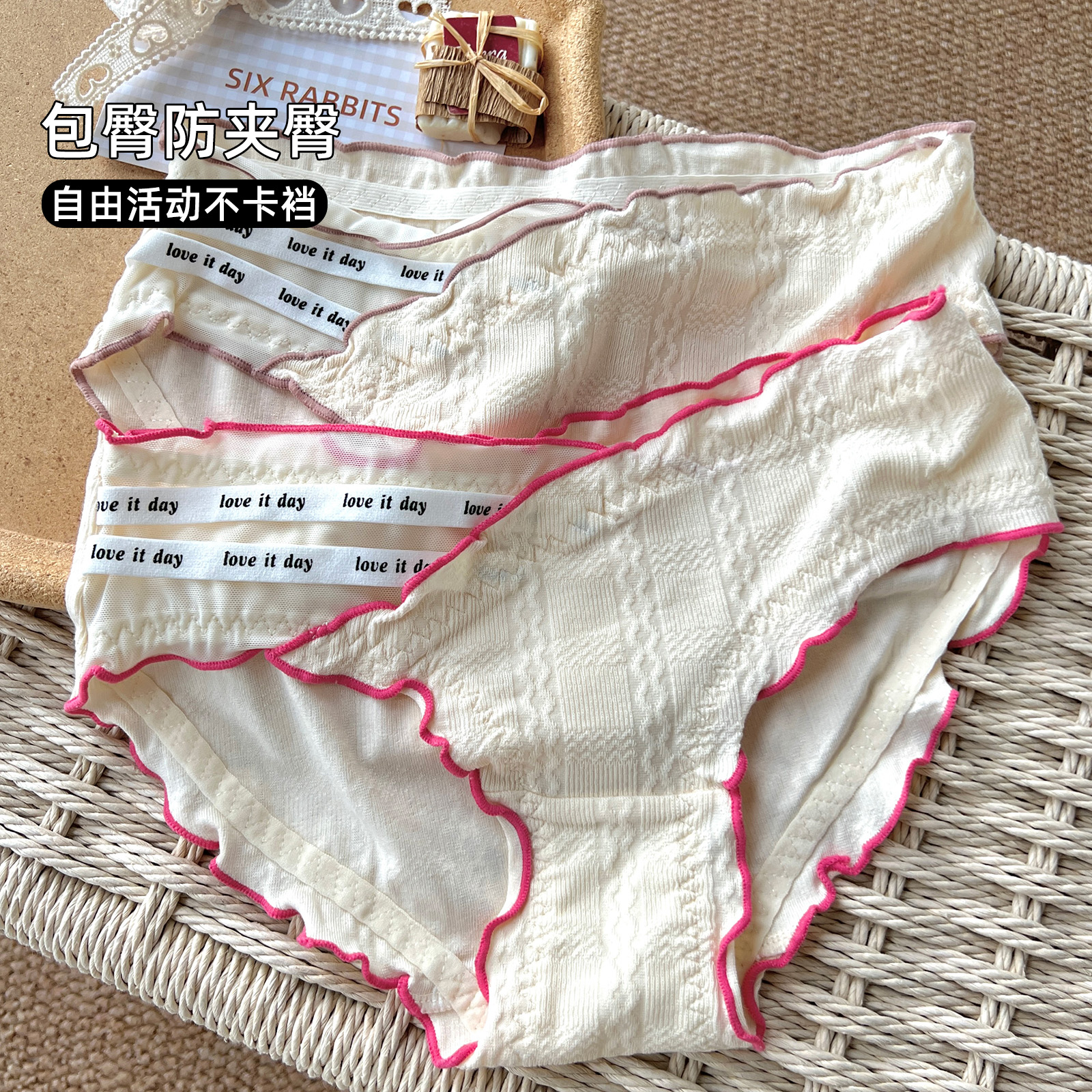 六只兔子内裤女纯棉底裆亲肤透气少女三角裤木耳边纯欲低腰短裤头
