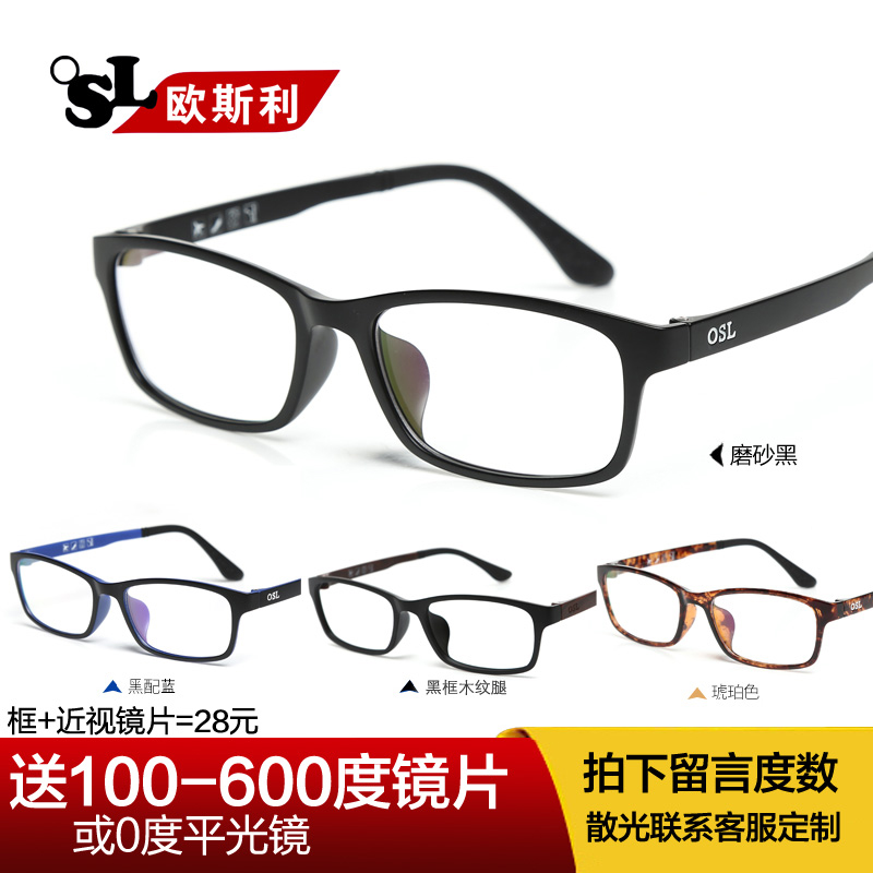 近视眼镜男女平光超轻全框黑舒适配眼睛近视镜眼镜框架成品有度数