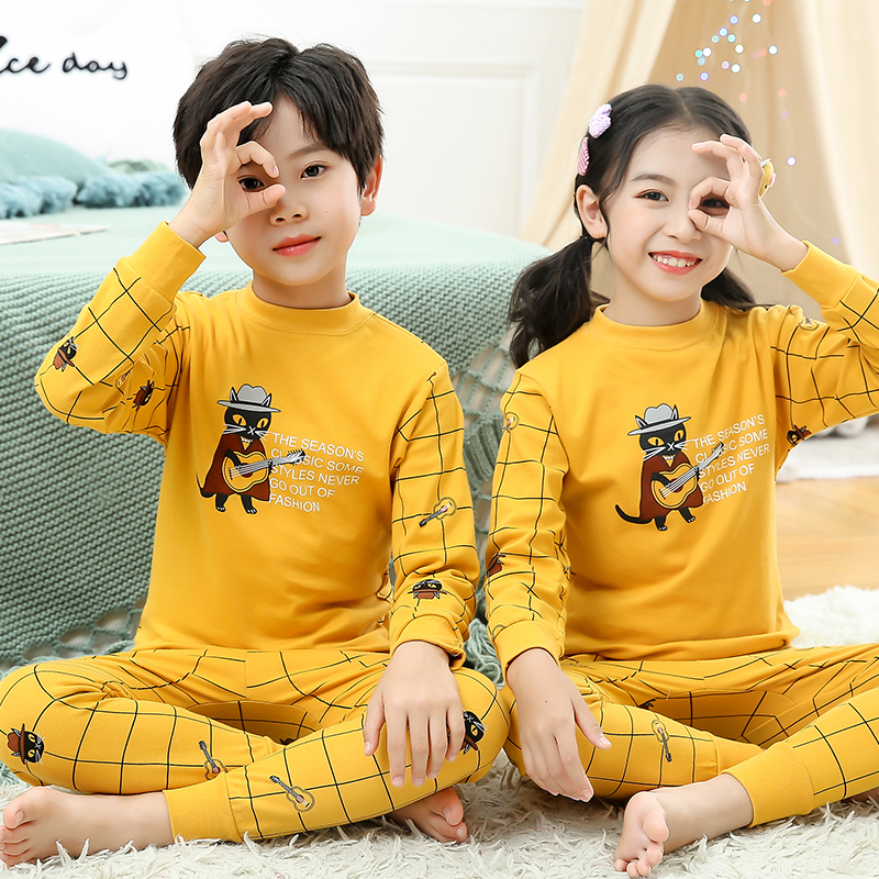 男女童秋衣秋裤纯棉中小童女孩100%全棉高领秋冬保暖儿童内衣套装