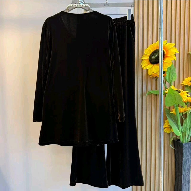 秋季大码女装休闲丝绒衬衫裤子