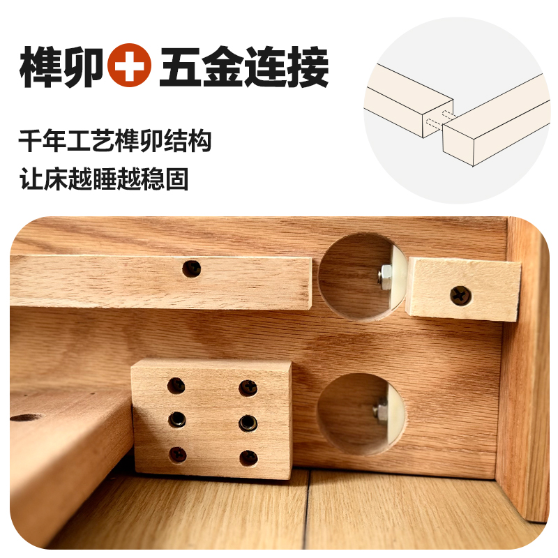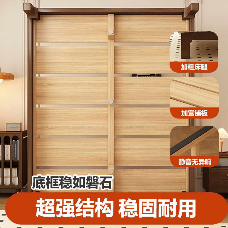 全实木床榫卯结构排骨架床架2025新款1米8家用卧室中古风实木床