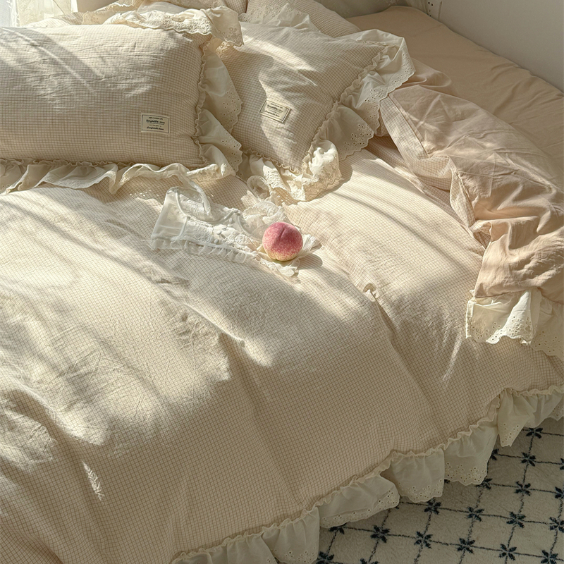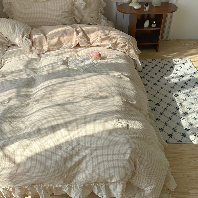 梨梦 ins韩系格子少女纯棉水洗棉四件套全棉床单被套宿舍床上用品