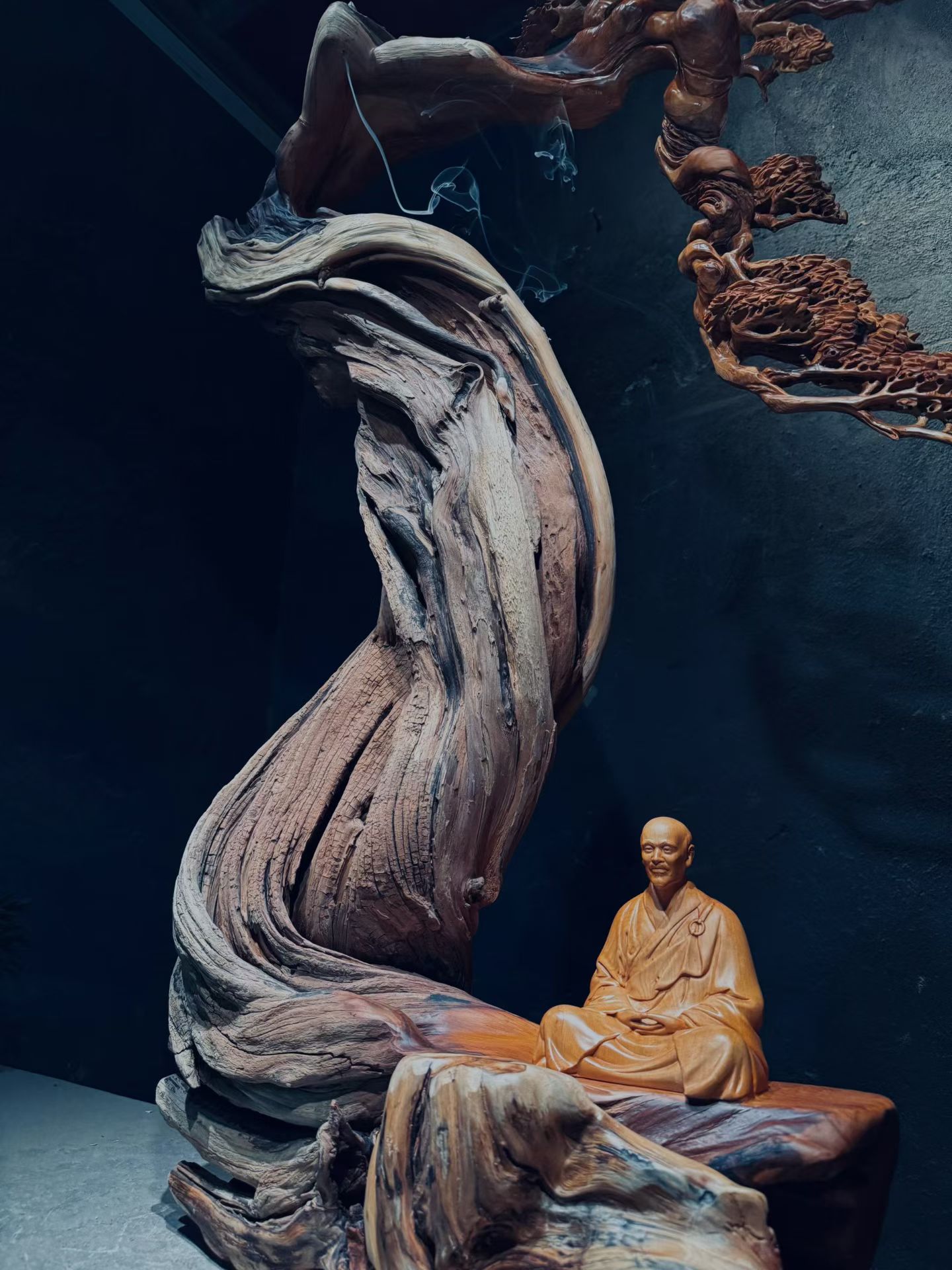 太行崖柏根雕摆件天然随形弘一法师木雕酒店别墅软装工艺品公司