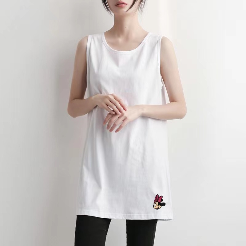 秋冬叠穿卫衣露白边纯棉中长款白色背心女无袖T恤屁帘子打底吊带