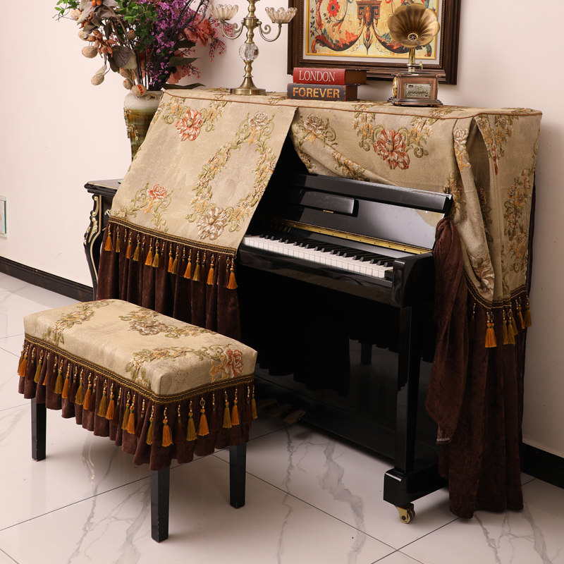 美式复古钢琴防尘罩高级感全包钢琴罩欧式奢华钢琴套凳罩高端定制