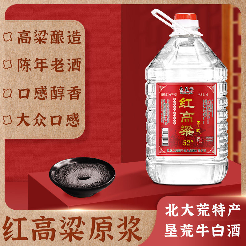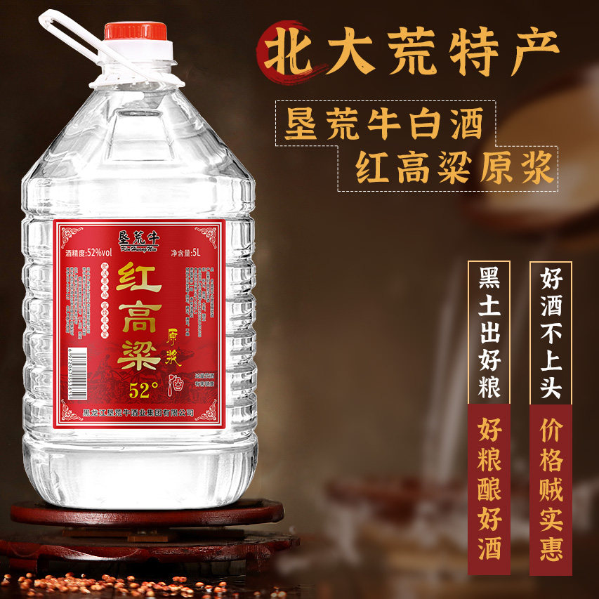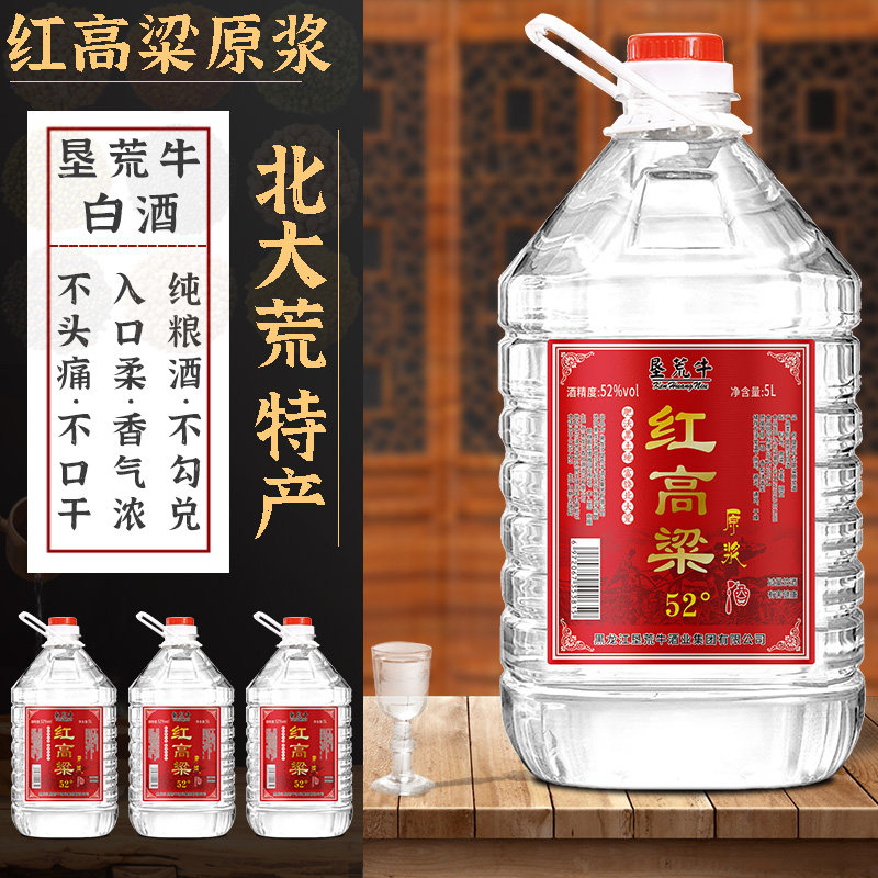5L高粱原浆52度清香型桶装垦荒牛红高粱酒纯粮食酒陈酿北大荒白酒