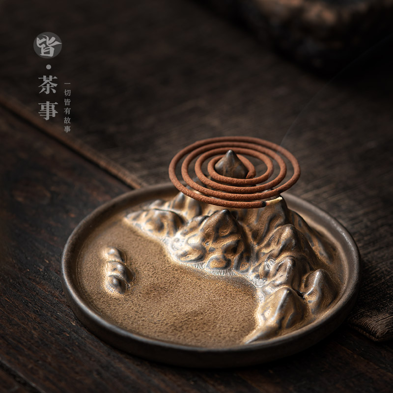 复古金山香炉线香插香座檀香倒流家用室内香熏炉香盘香台香托摆件