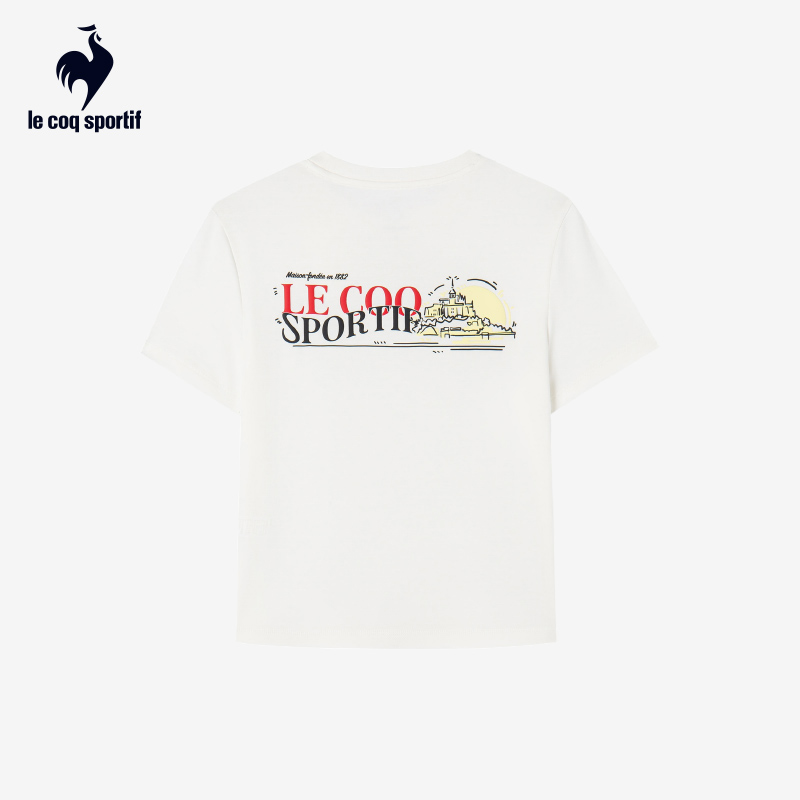 乐卡克法国公鸡2025新款夏季女士运动短袖纯棉透气印花圆领T恤