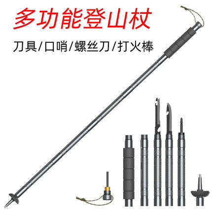 铝合金多功能登山杖户外徒步远足轻质5节伸缩折叠多功能登山杖
