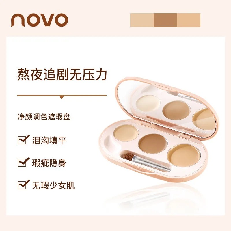【滋润版】novo三色遮瑕膏遮盖斑点痘痘印面部提亮黑眼圈遮暇盘女