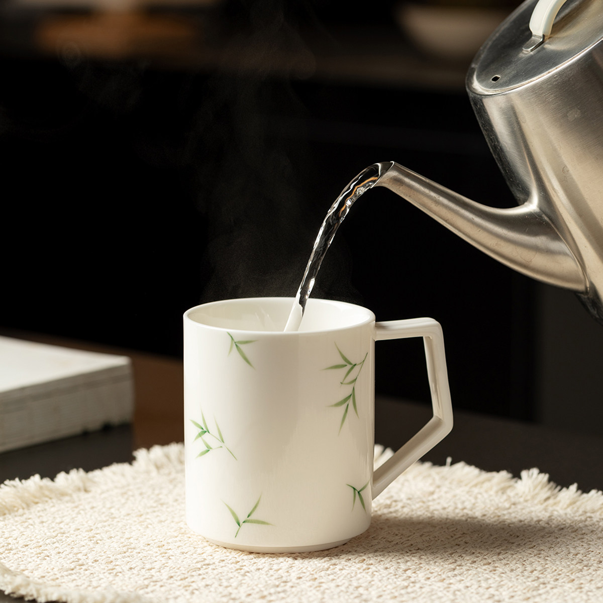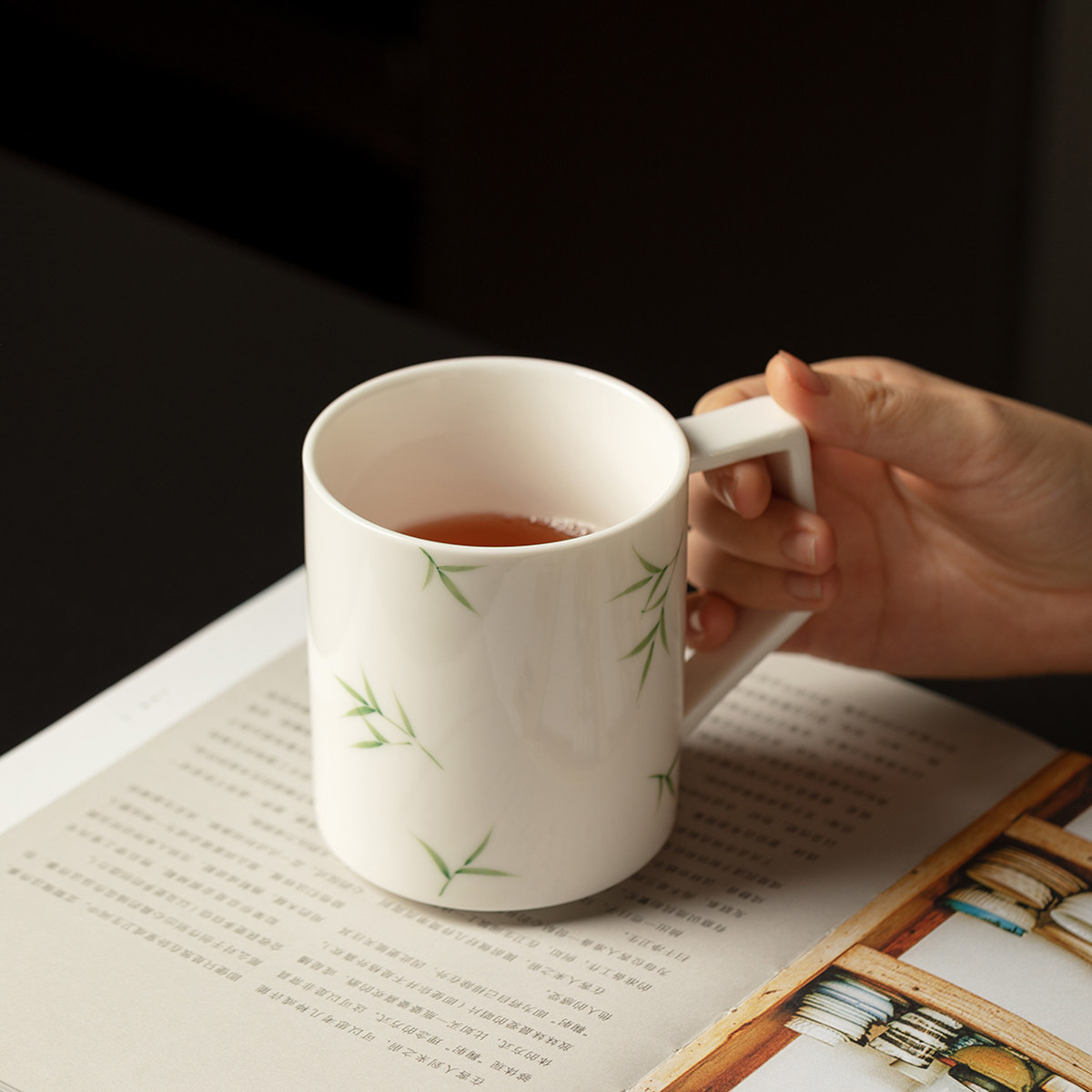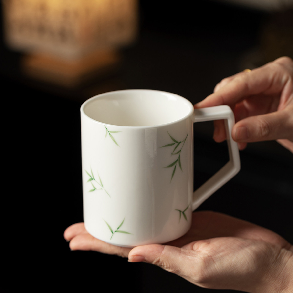 陶瓷水杯手绘翠竹马克杯带手把办公室泡茶杯茶具家用大容量喝水杯