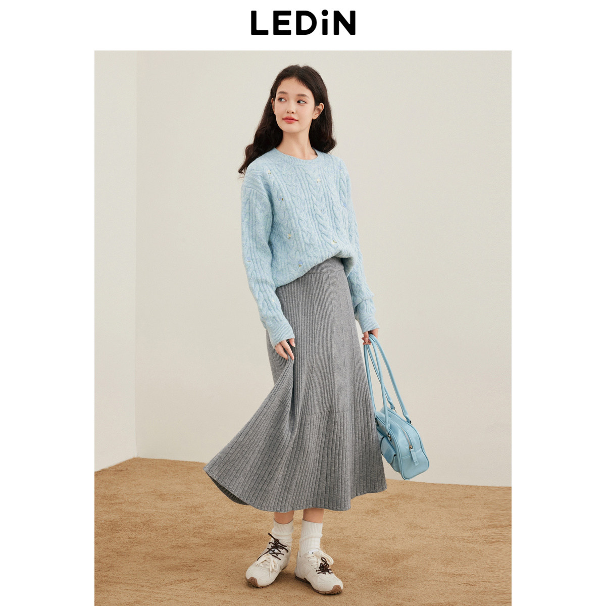 【反季清仓】乐町针织长款伞裙女装冬多色A版遮肉显瘦大裙摆半身