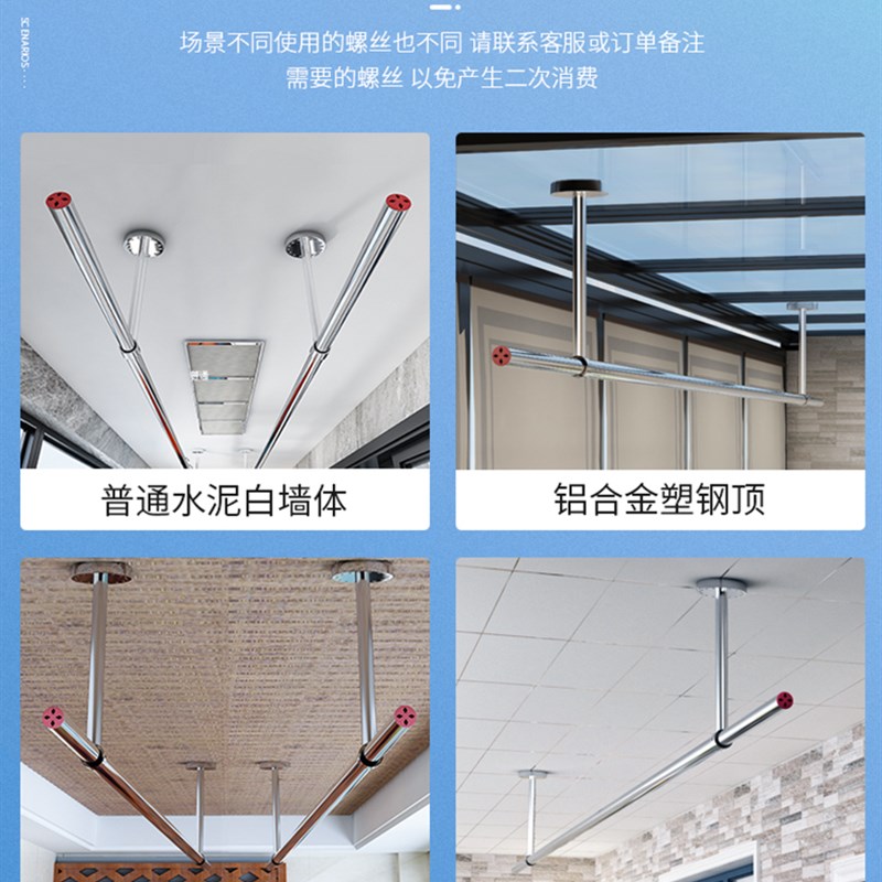 极速固定晾衣杆伸缩不锈钢晒衣杆室内晾衣架O窗台晾衣杆家用阳台