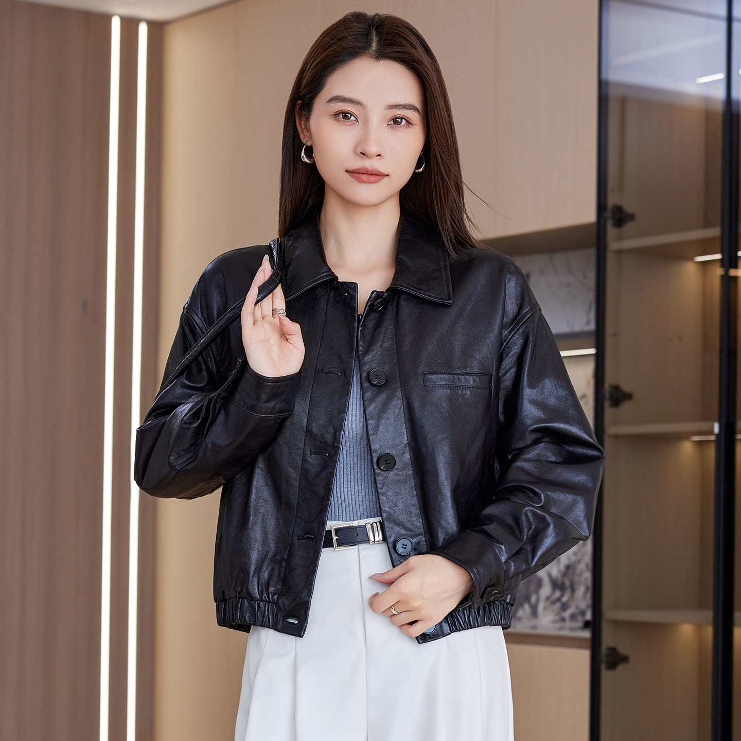 2025秋冬新款绵羊皮短款皮衣休闲宽松韩版皮夹克气质百搭时尚外套