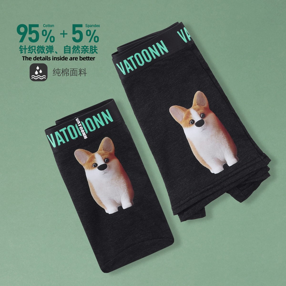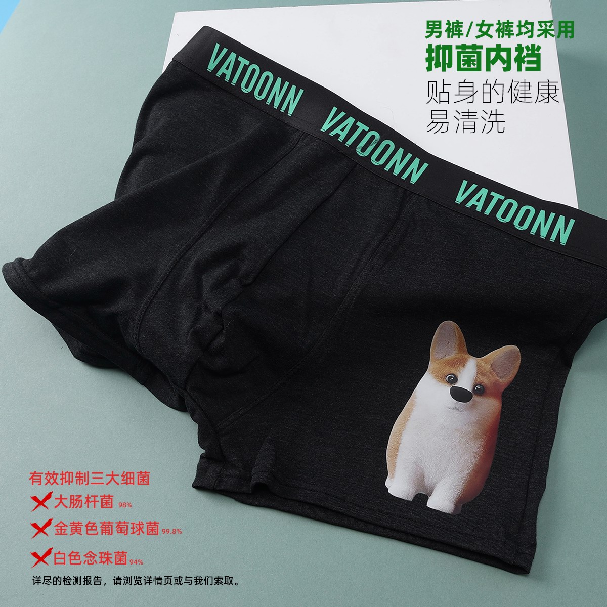 情侣纯棉内裤男平角女三角卡通印花潮狗图案收腹宽腰带大码抑菌裆