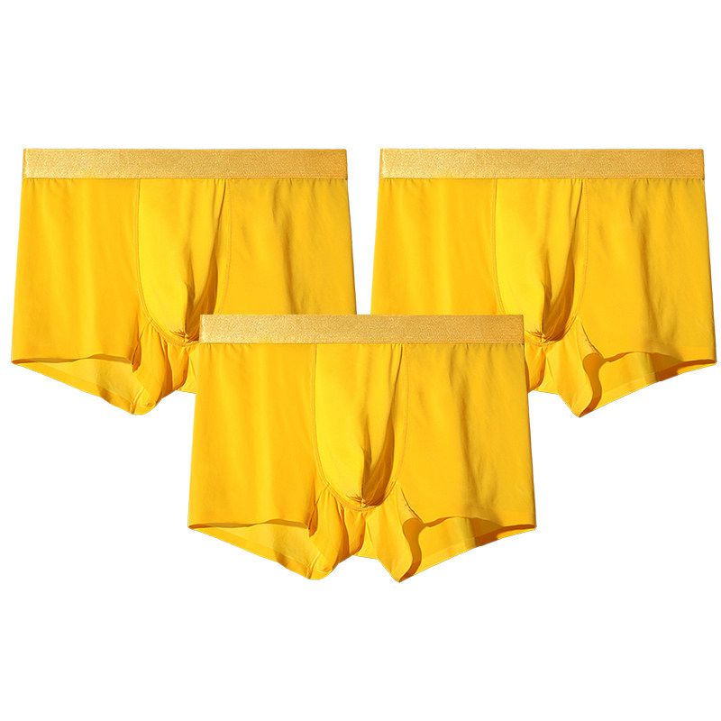 真维斯夏季薄款男士内裤男生冰丝金黄色平角透气无痕男款四角短裤