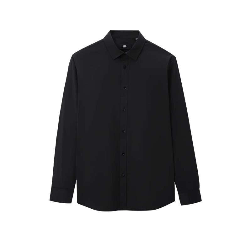 HLA/海澜之家长袖黑衬衫男秋季新款透气商务正装易打理衬衣工作服