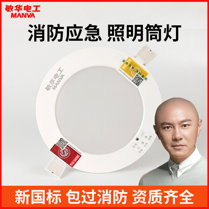 敏华消防应急筒灯嵌入式过道停电人体感应声控4寸led天花照明筒灯