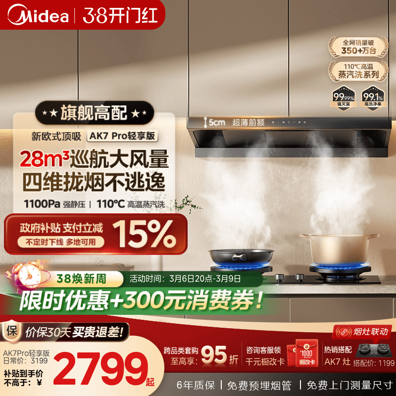 爆款升级美的蒸汽洗油烟机