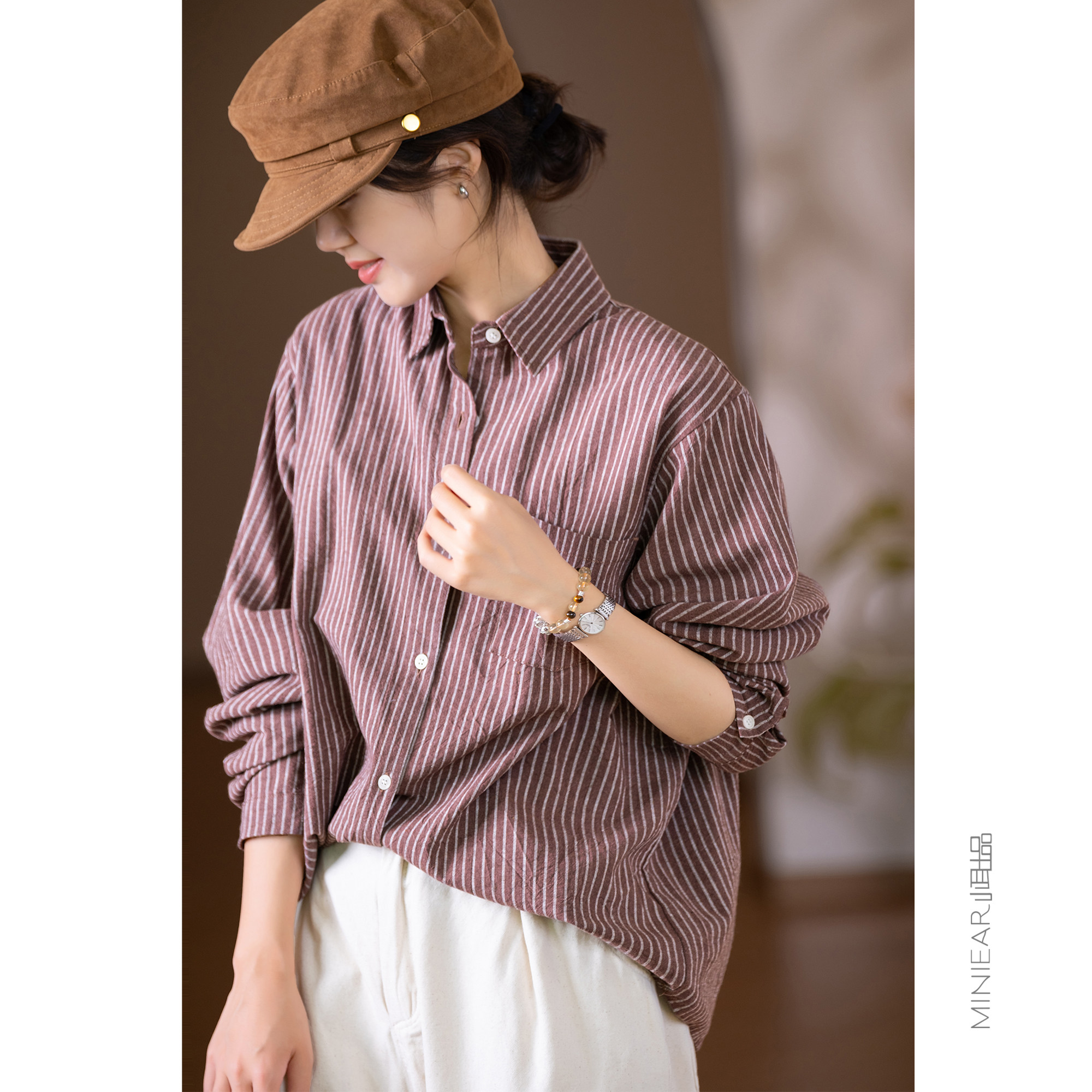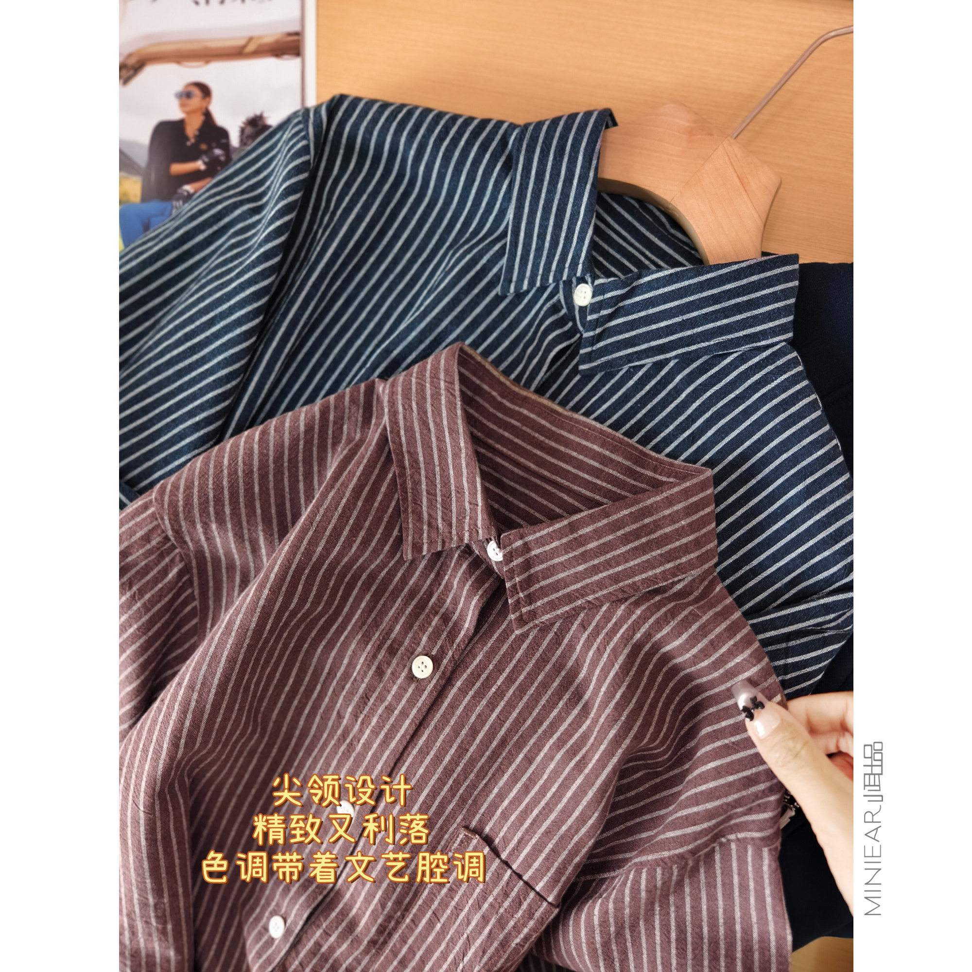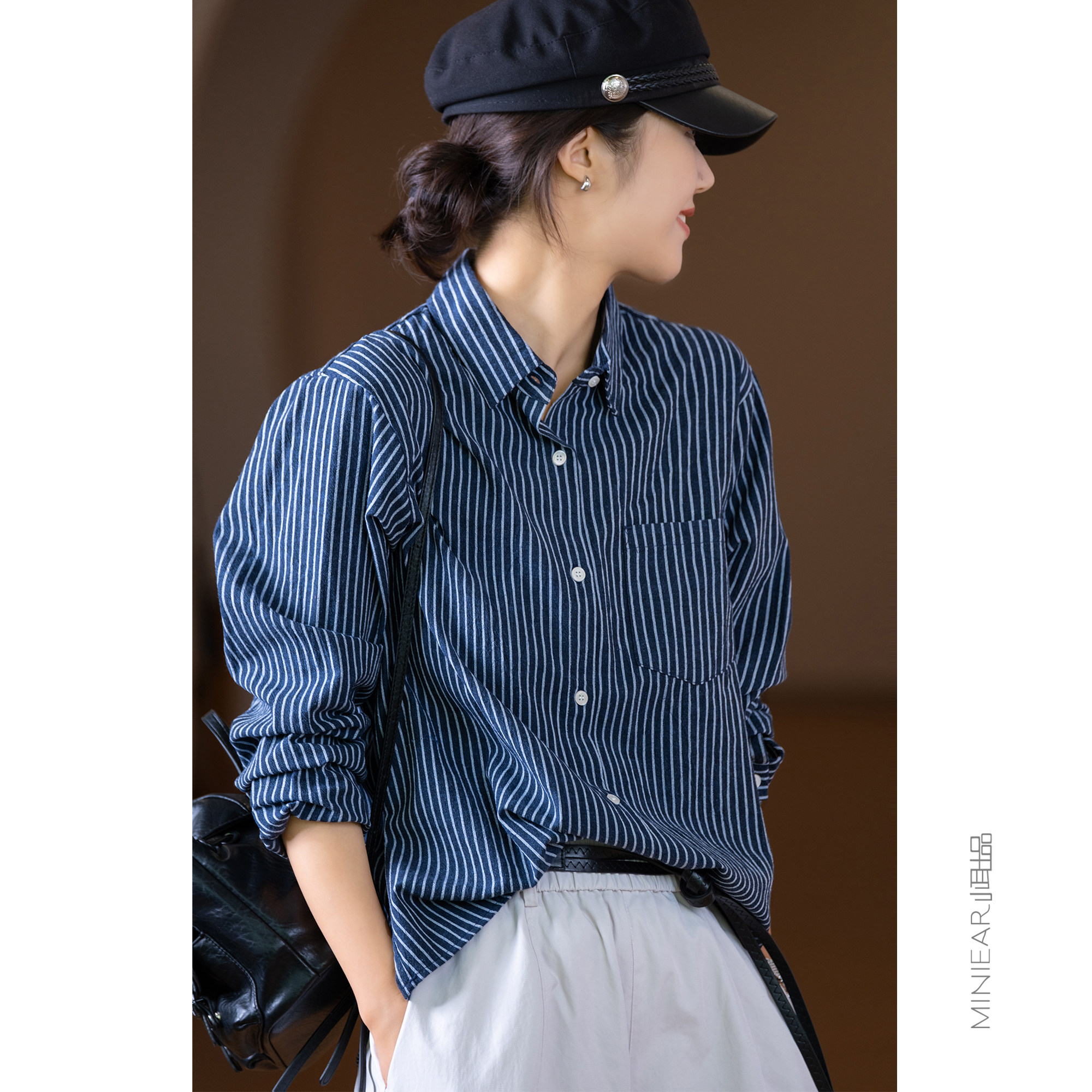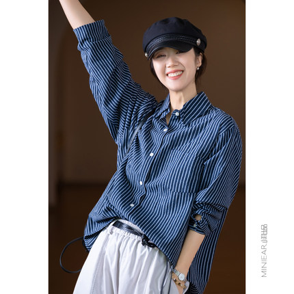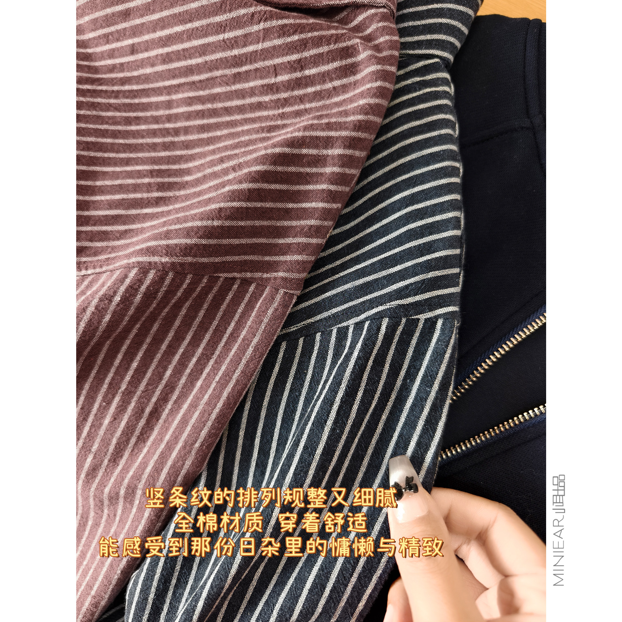小耳出品 韩系海魂风 色织条纹/重工磨毛 全棉休闲宽松竖条纹衬衫
