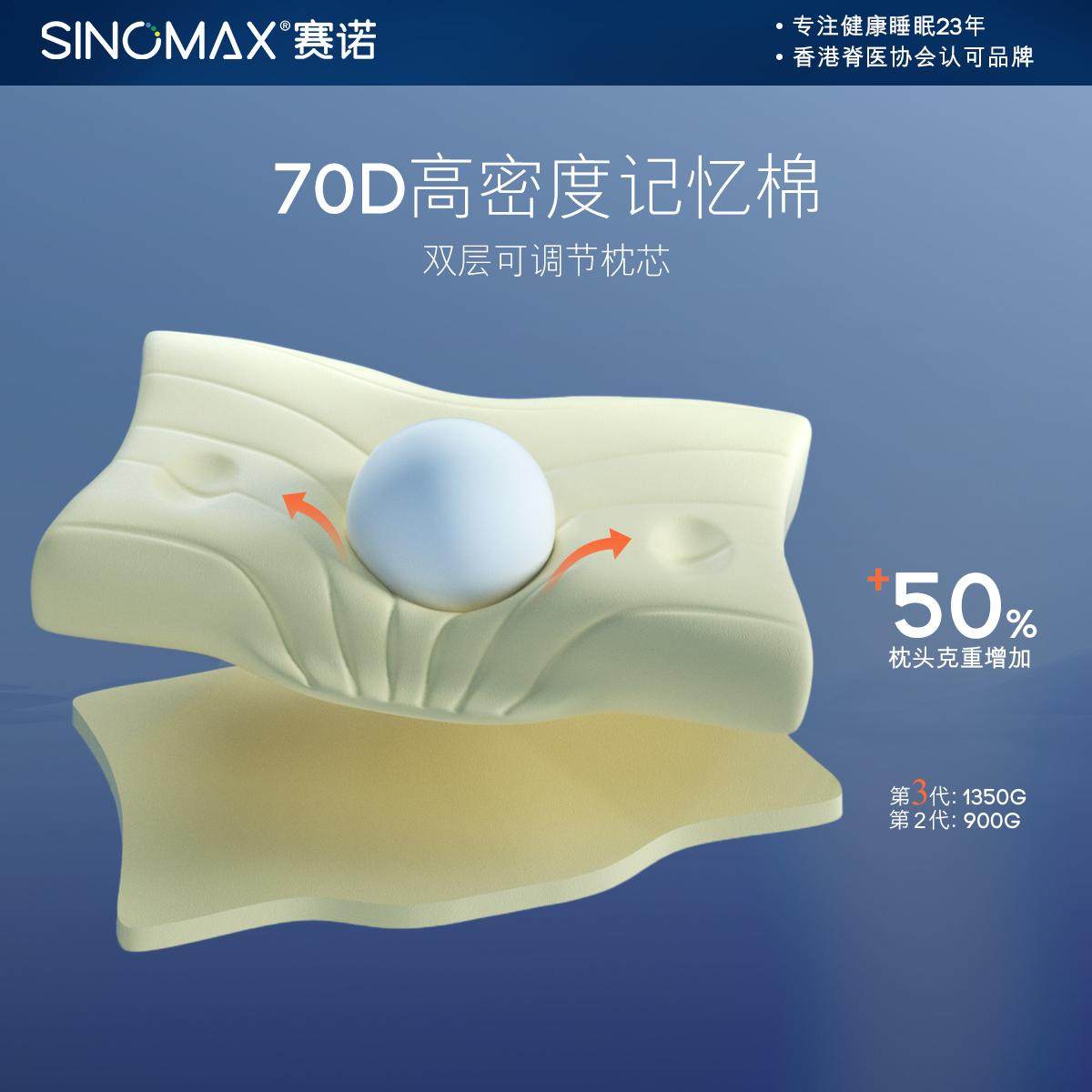 SINOMAX/赛诺4D护颈枕第3代升级款深睡眠慢回弹记忆枕可调节枕芯