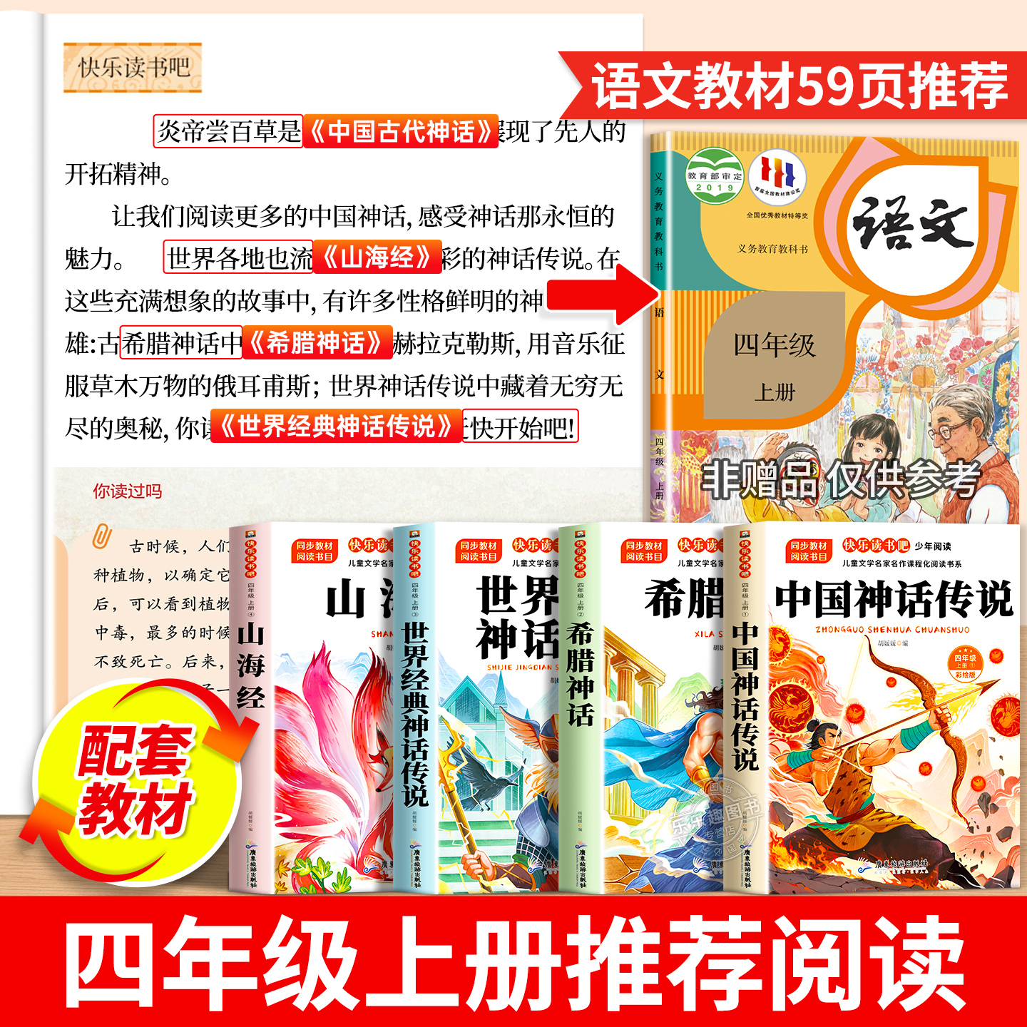 中国古代神话故事四年级上册必读课外书快乐读书吧全套老师推荐正版世界经典希腊神话 英雄传说山海经4上小学生版适合读的阅读书籍