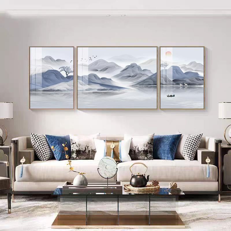 客厅装饰画镶钻挂画大气高端沙发背景墙壁画现代简约家庭三联画