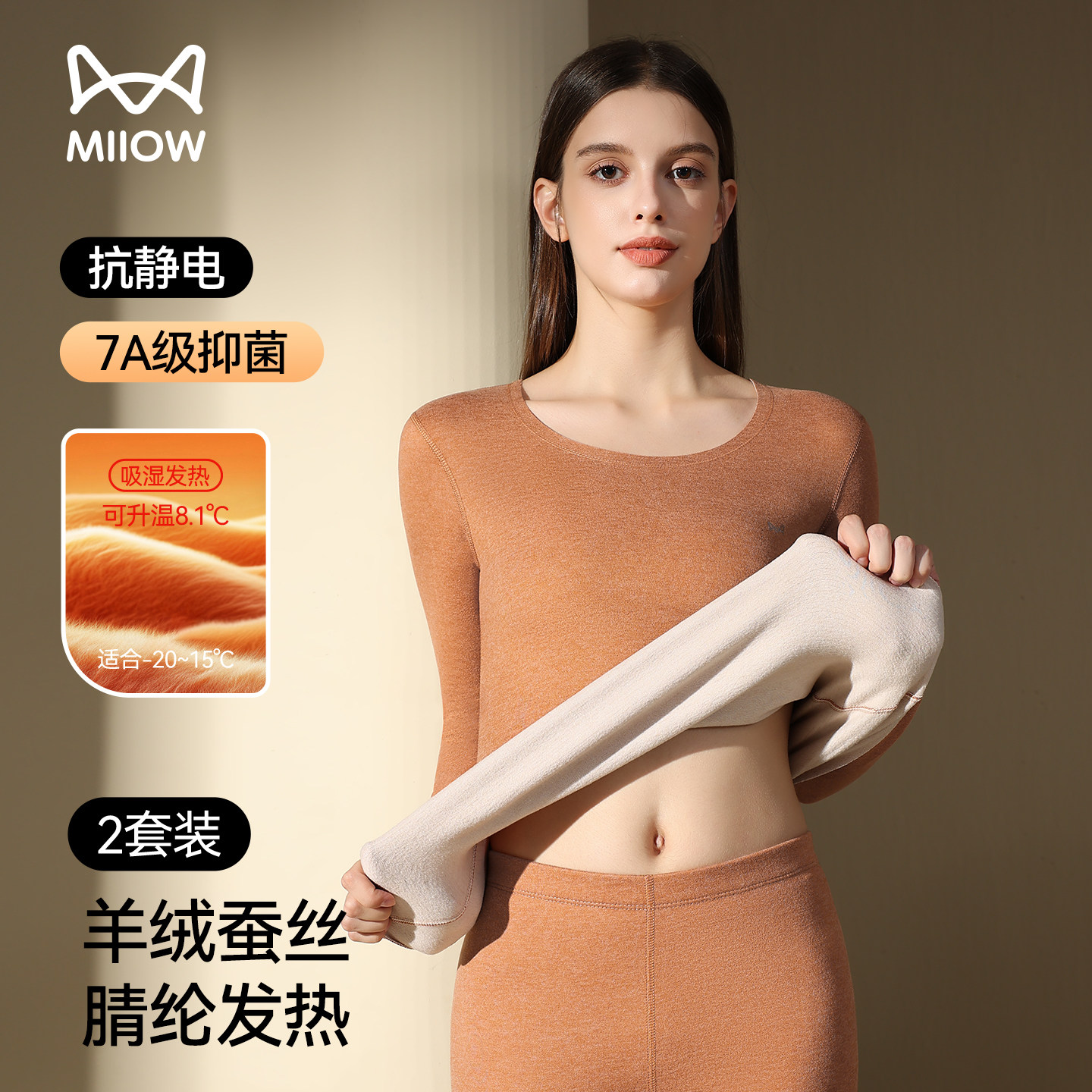猫人发热无痕保暖内衣女款套装