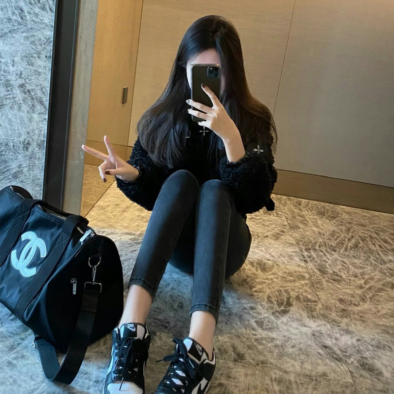 烟灰色加绒小脚牛仔裤女2025新款修身显瘦高腰紧身九分弹力铅笔裤