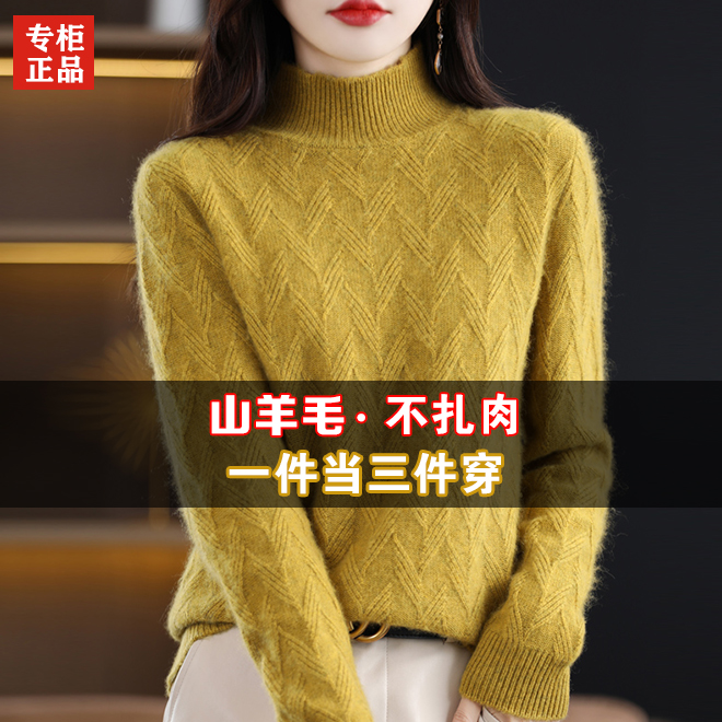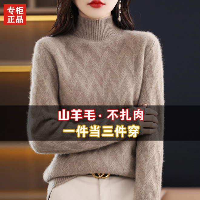 羊毛衫女100%纯羊毛秋冬网红炸街半高领打底衫加厚保暖棉羊绒毛衣
