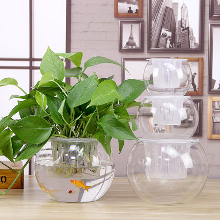 极速创意桌面水培瓶植物透明玻璃花瓶绿萝花盆Q鱼花共养缸水养摆